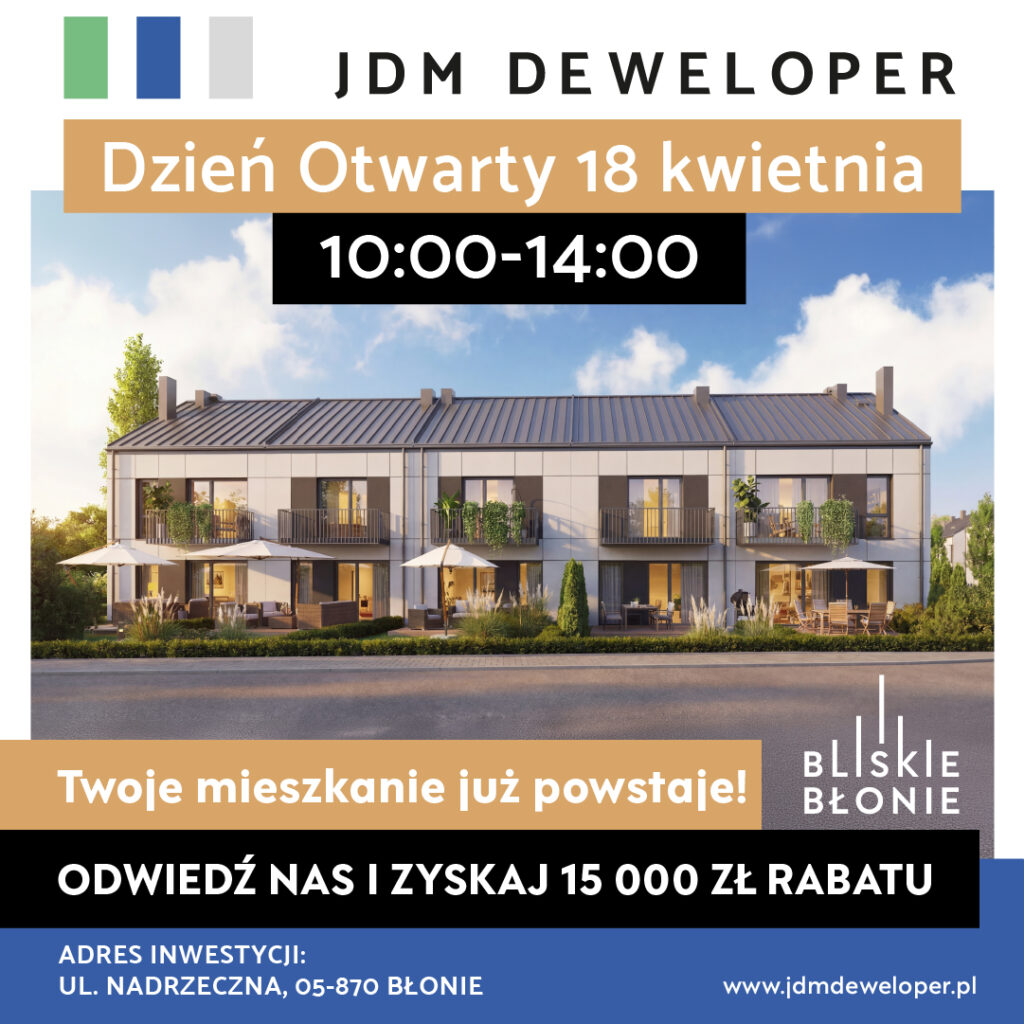 Inwestycja Bliskie Błonie przy ulicy Nadrzecznej to idealna propozycja dla osób szukających komfortowego domu pod Warszawą. Położenie w zielonej części Błonia pozwala doświadczyć wymarzonego spokoju i prywatności, zapewniając jednocześnie szybki, zaledwie 25-minutowy dojazd do Warszawy. Dzięki strategicznej lokalizacji wszystko co niezbędne do wygodnego życia znajduje się na miejscu. Wybierając dom w inwestycji Bliskie Błonie, zyskujesz równowagę między bliskością natury, a pełną infrastrukturą miejską i wygodną komunikacją ze stolicą. W najbliższym sąsiedztwie czekają na Ciebie nowoczesne szkoły, przedszkola oraz sklepy, które sprawiają, że codzienność staje się prosta i komfortowa.
